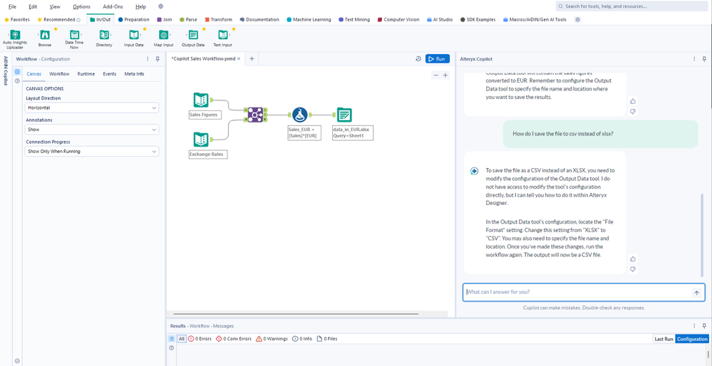 The power of Alteryx Copilot doesn’t stop at guidance. By integrating advanced AI analytics capabilities, Copilot can directly add and configure tools to your Designer canvas. You’ll see the tools you need precisely where they belong—all based on Copilot’s transparent, clearly documented suggestions.