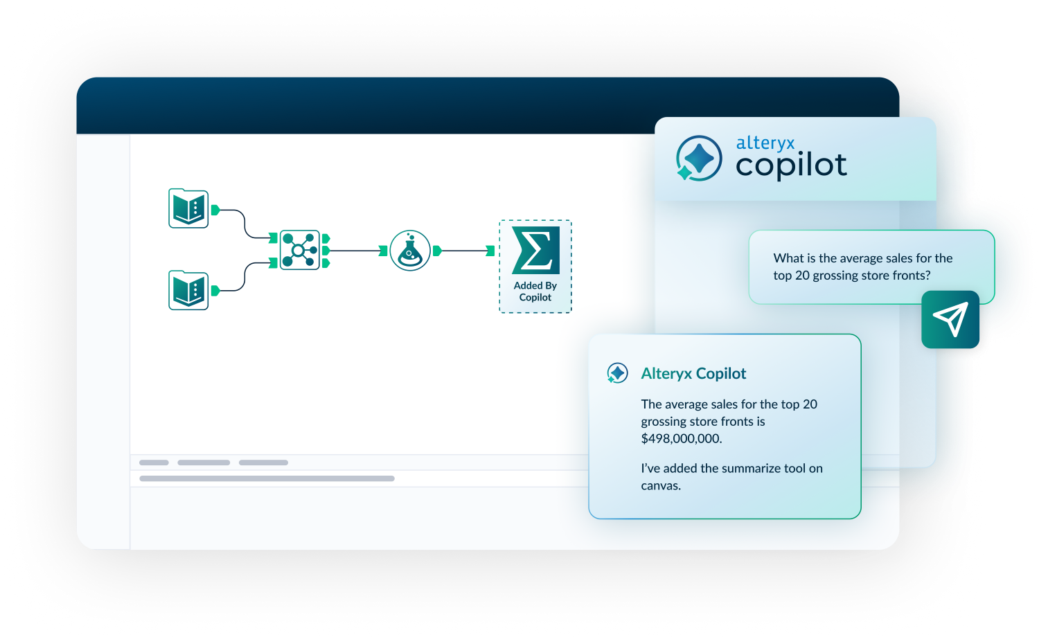 Best of all, let Copilot do the heavy lifting! Alteryx Copilot not only suggests your next steps but also places and configures these data automation tools directly on your canvas, teaching you analytics best practices and accelerating your workflow creation.