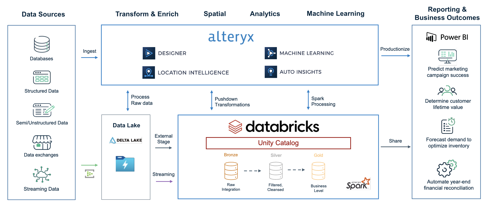 Databricks provides a unified Lakehouse architecture, and Alteryx builds on this with a single, intuitive data analytics interface. Together, they simplify your workflows and reduce your tech stack complexity.
